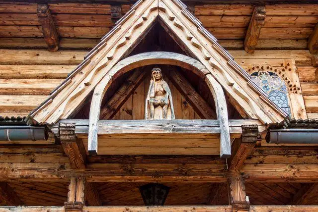 בנוסף, יש בכנסייה דוגמאות רבות שמייצגות את החיבור בין האדם לטבע. חלונות קטנים דמויי עיניים, קורות שיוצרות דפוסים גאומטריים, ועמודים מפוסלים שנראים כמו עצים חיים. כל אלו יוצרים שפה חזותית ייחודית – שקטה אך עוצמתית – שמאפשרת לכל מבקר להבין את מהות התרבות ההררית של זקופנה (Zakopane).