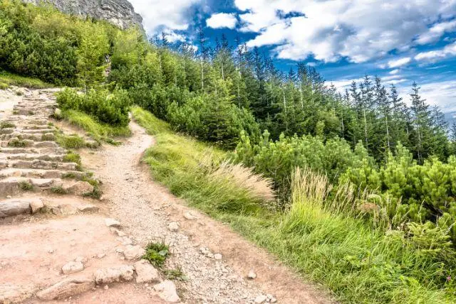 המסלול עצמו מתחיל בצורה מתונה יחסית. השביל מתפתל בין עצי אורן מחטניים גבוהים, כשנחל Biały Potok זורם לצידו ומשמיע מנגינה טבעית מרגיעה. ככל שמתקדמים, השיפוע מתגבר מעט, אך הדרך נוחה וברורה היטב. לכל אורך המסלול ישנם שלטים קטנים המציינים את המרחק שנותר לפסגה, כך שקל לדעת היכן אתם נמצאים ומה עוד צפוי.