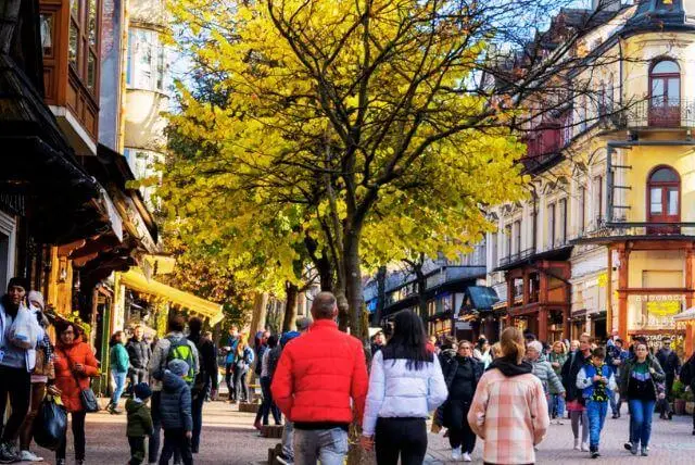 היום הראשון הוא הזמן להרגיש את הדופק של זקופנה. התחילו את היום ברחוב קרופובקי (Krupówki Street) – הלב הפועם של העיר. זהו הרחוב הראשי שבו פוגשים את כל מה שמאפיין את המקום: דוכני גבינות עיזים מעושנות, חנויות עבודות יד, מאפיות ביתיות, בתי קפה נעימים ואווירה הררית תוססת.
